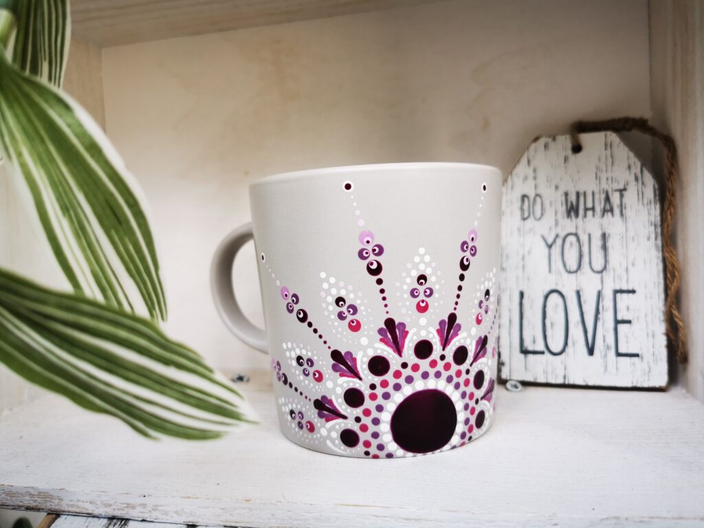 O cană pictată manual, inspirată de frumusețea florilor de cireș. Design delicat, cu nuanțe de roz pal și alb, perfectă pentru a aduce un strop de primăvară în fiecare dimineață.